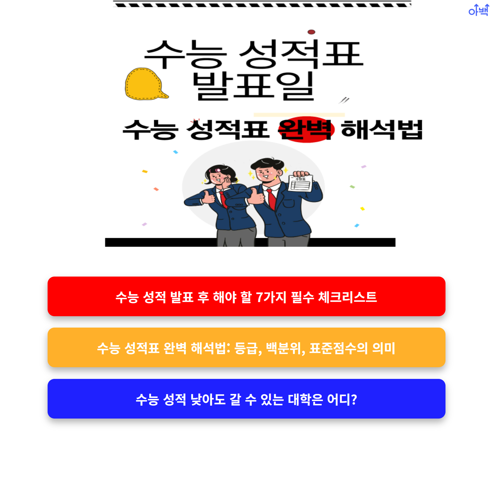 아래 링크를 통해 바로 수능 점수를 확인하시고, 남은 입시 전략을 계획해보시길 바랍니다.